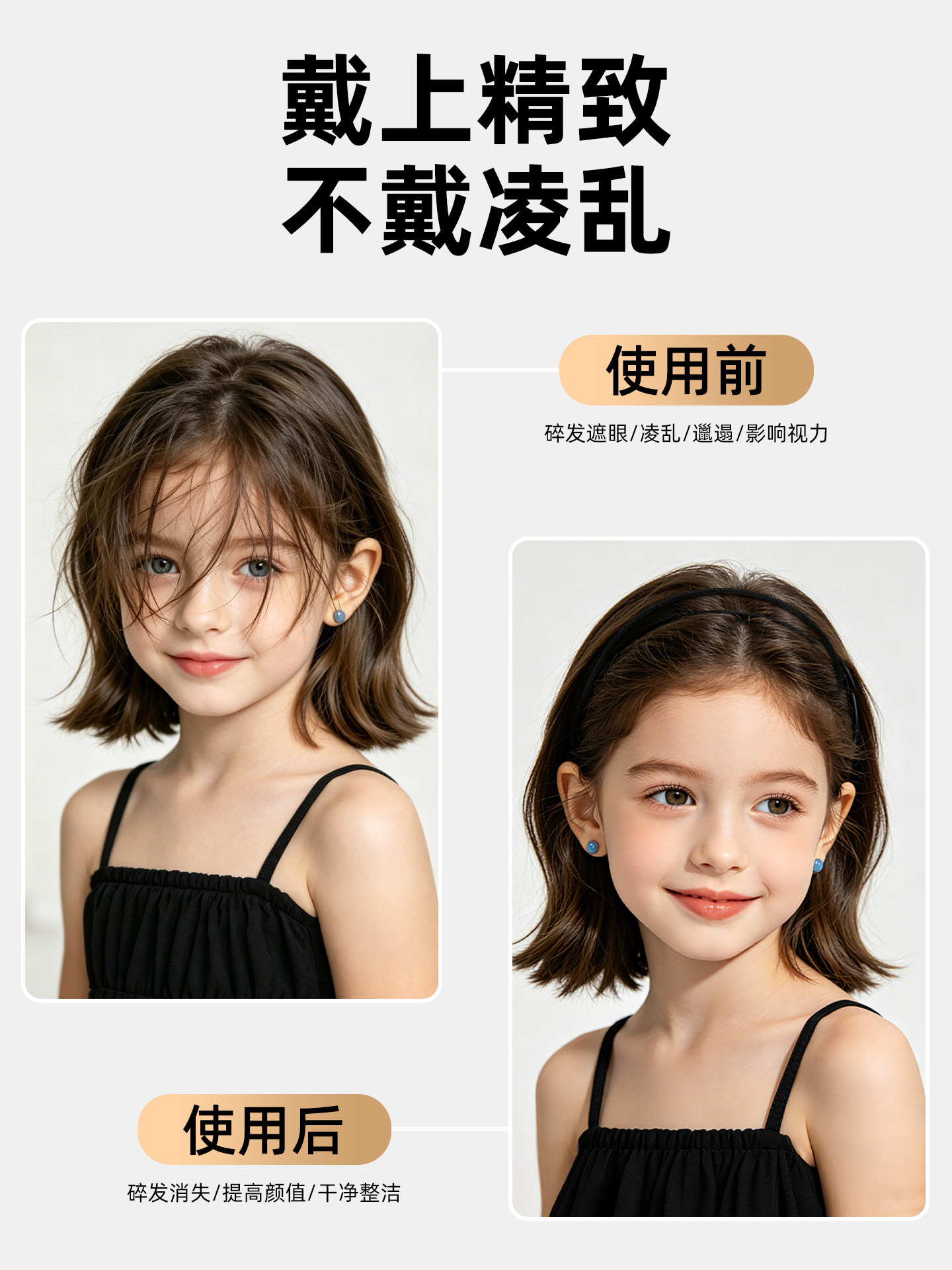 TKBO儿童女发箍不勒头防滑头箍小女孩短发压发捆碎发整理发卡头饰