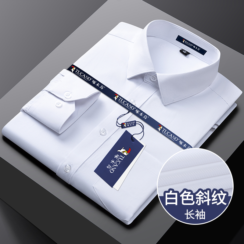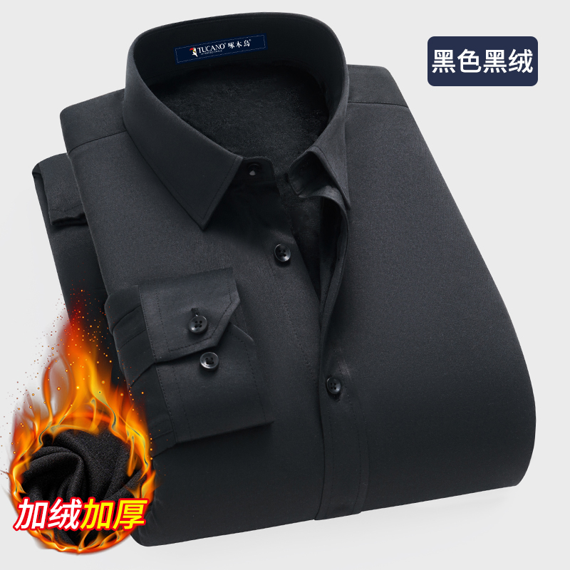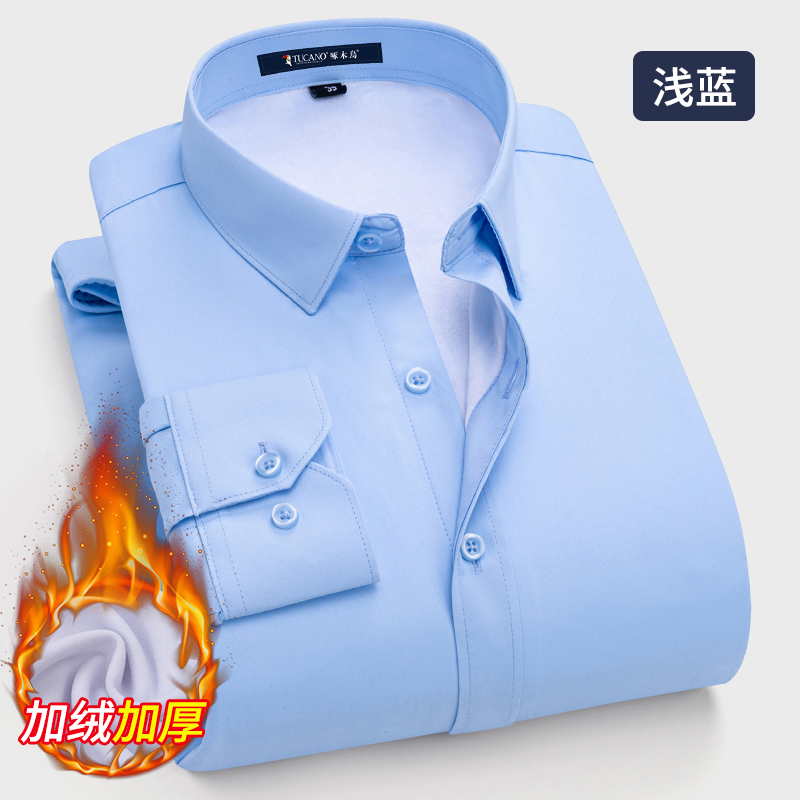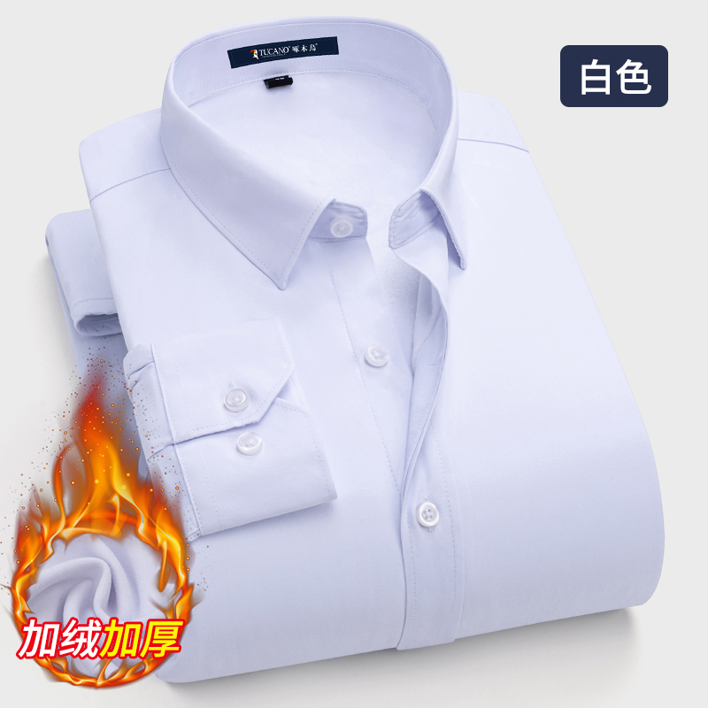啄木鸟男士白衬衫长袖商务免烫加绒厚保暖正工装结婚伴郎短袖寸衣