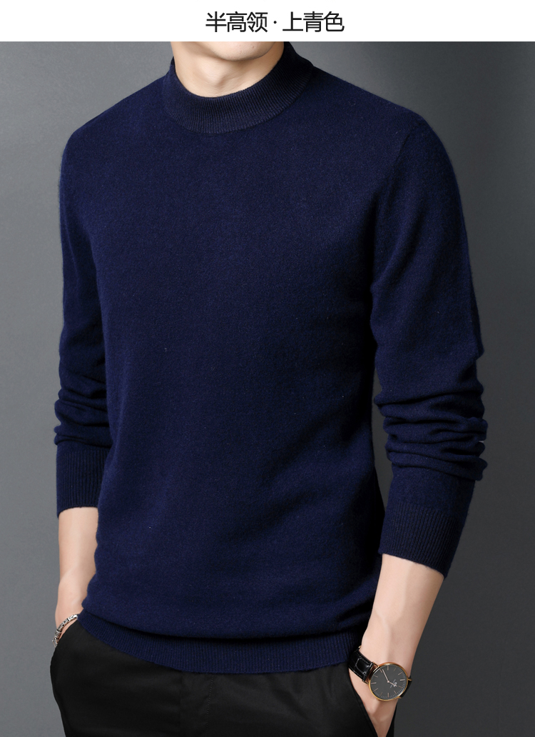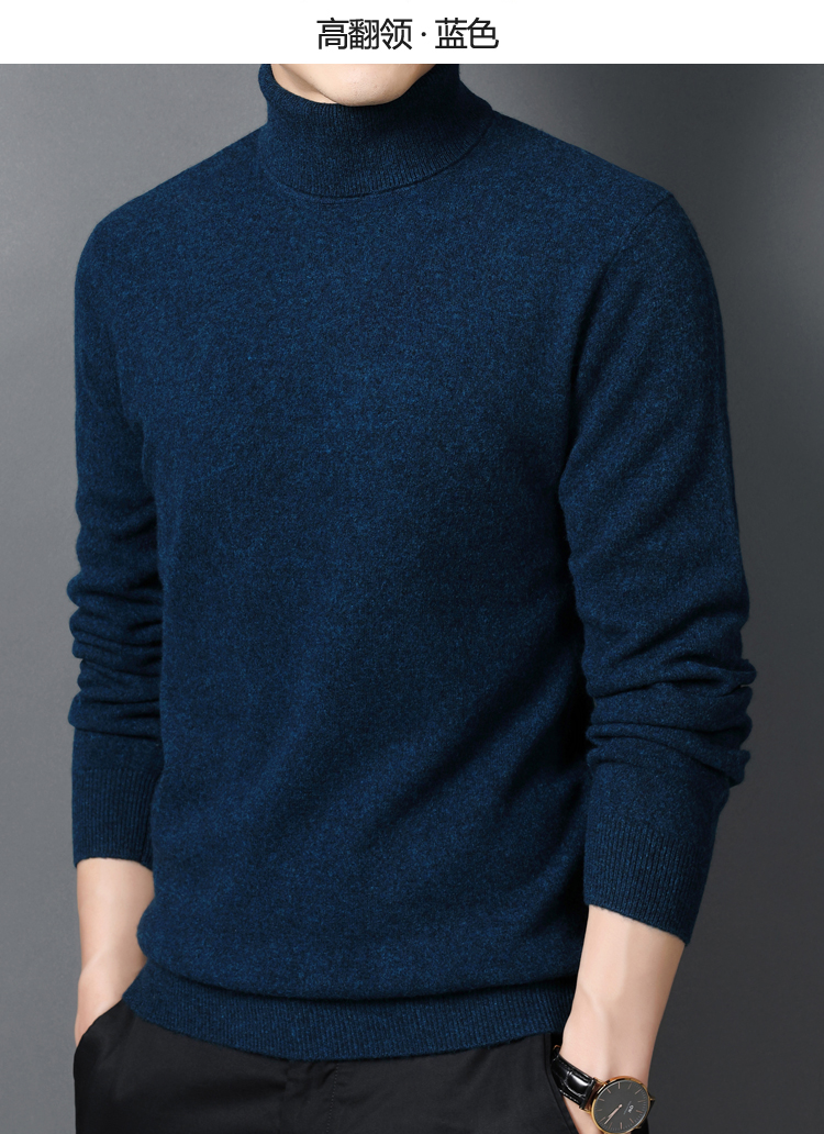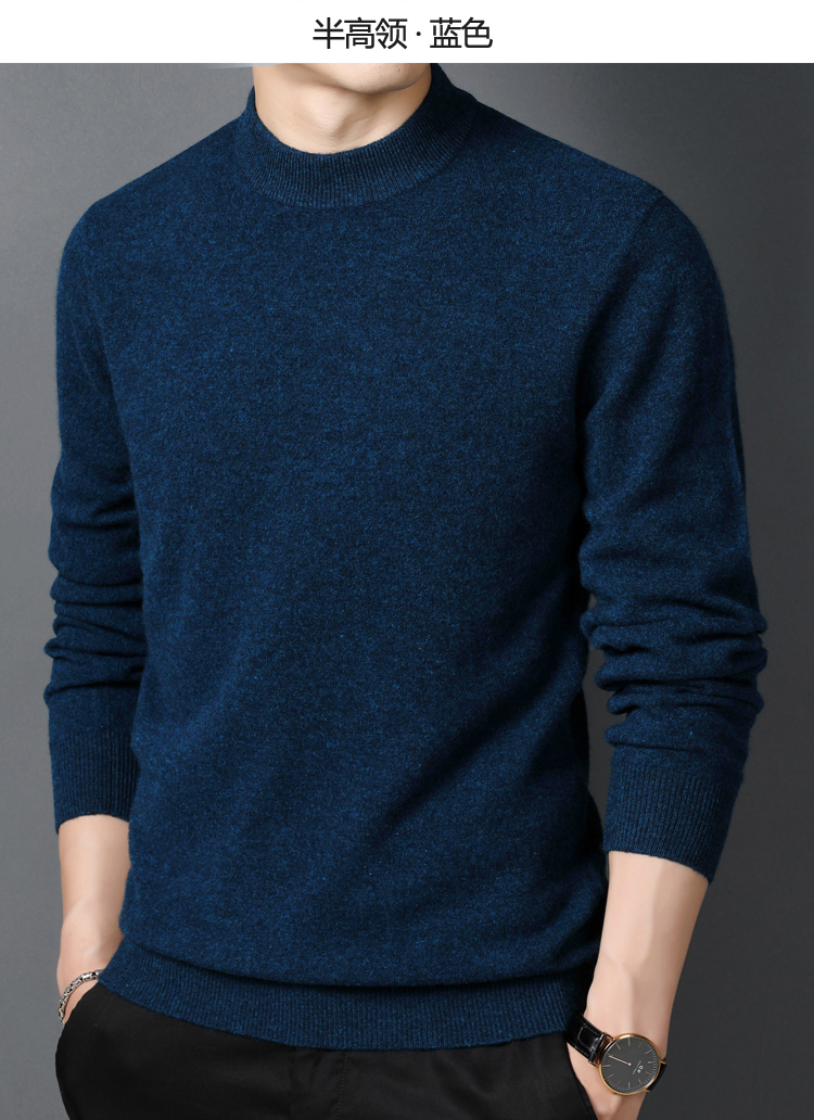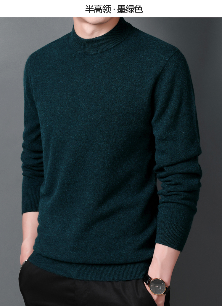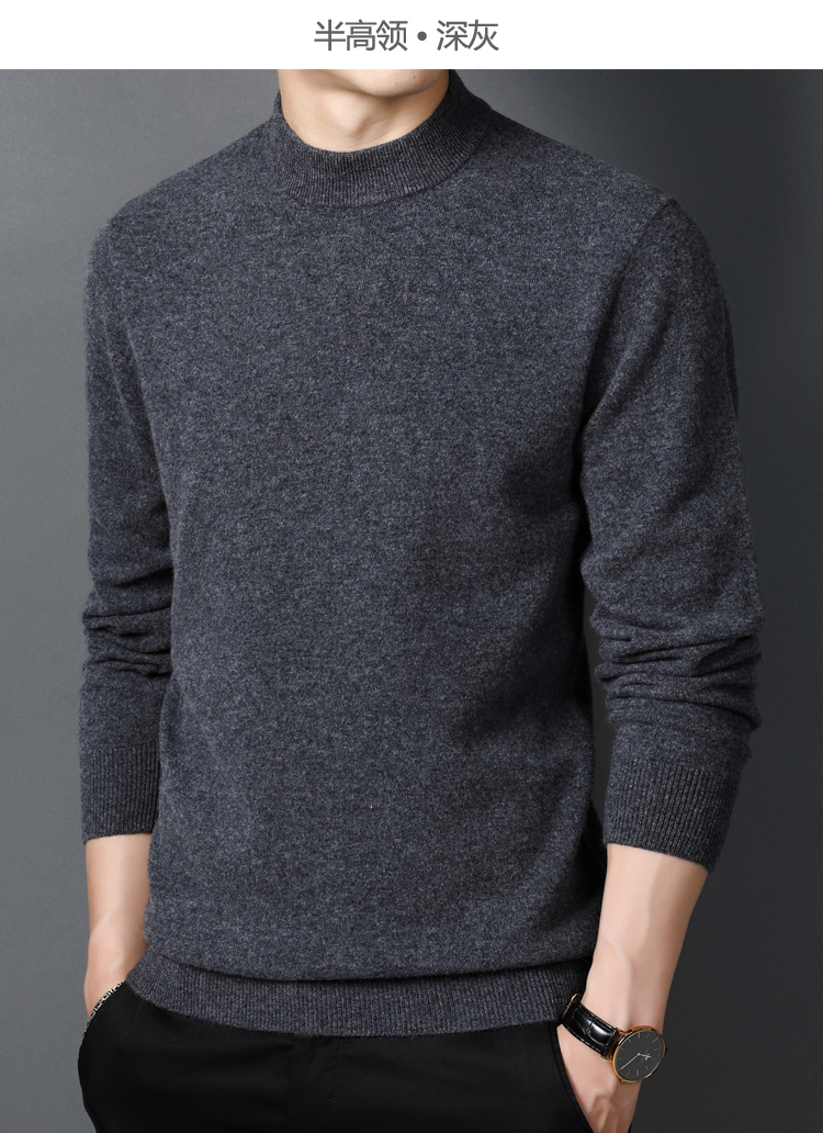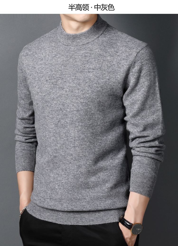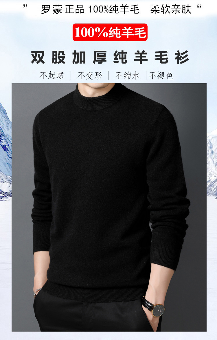 正品罗蒙羊毛衫男冬季保暖加厚中年纯色半高领针织打底毛衣男宽松