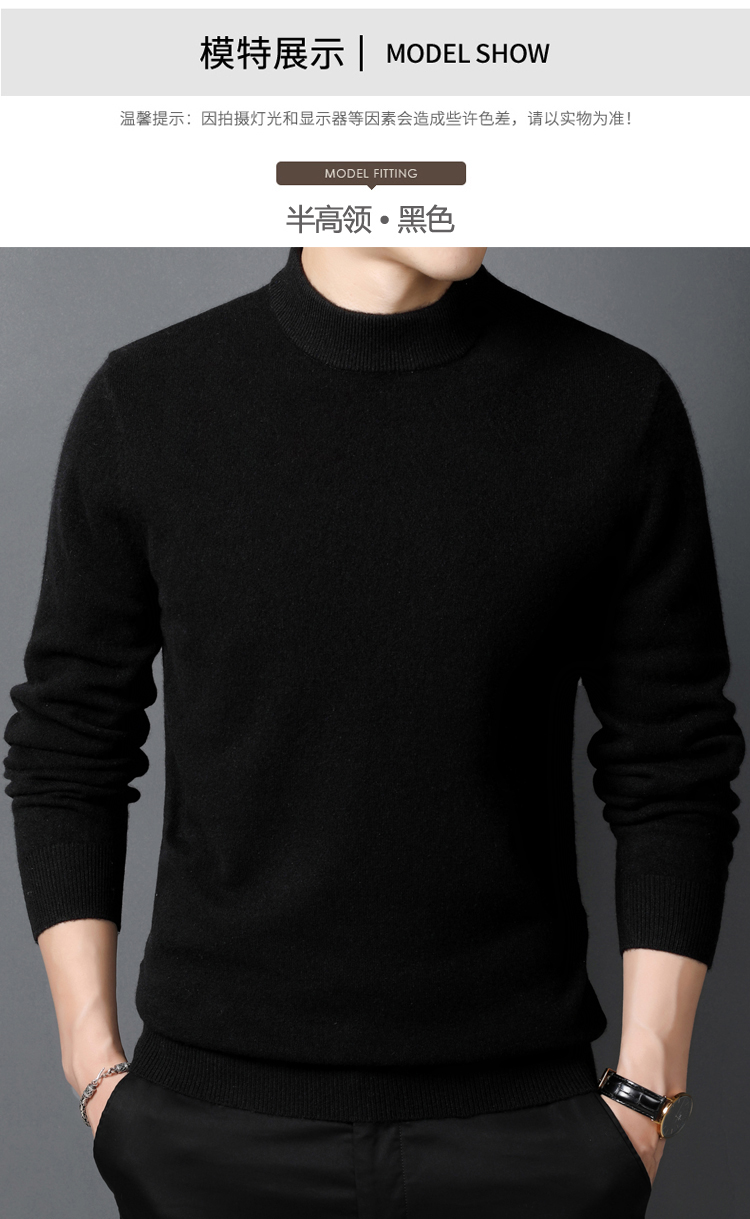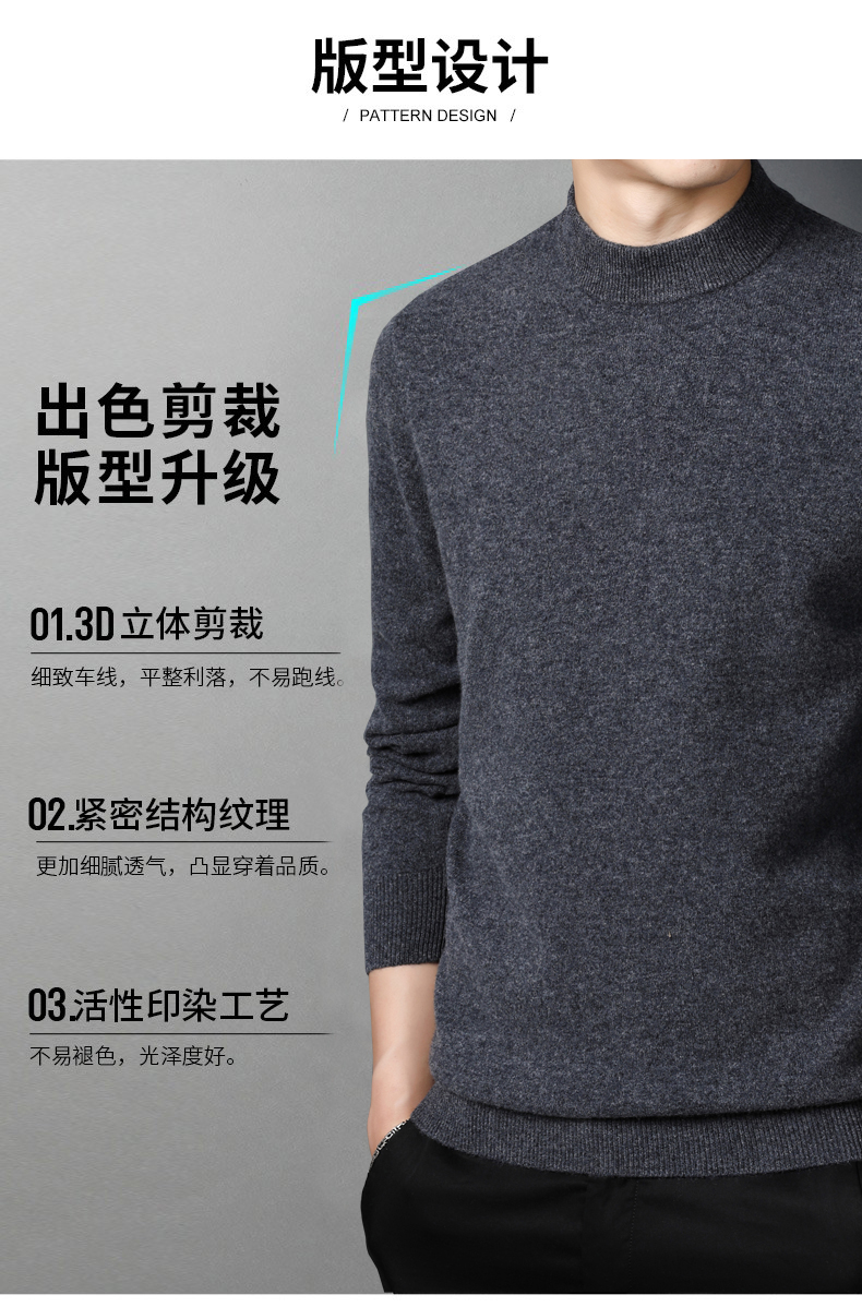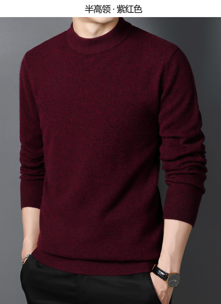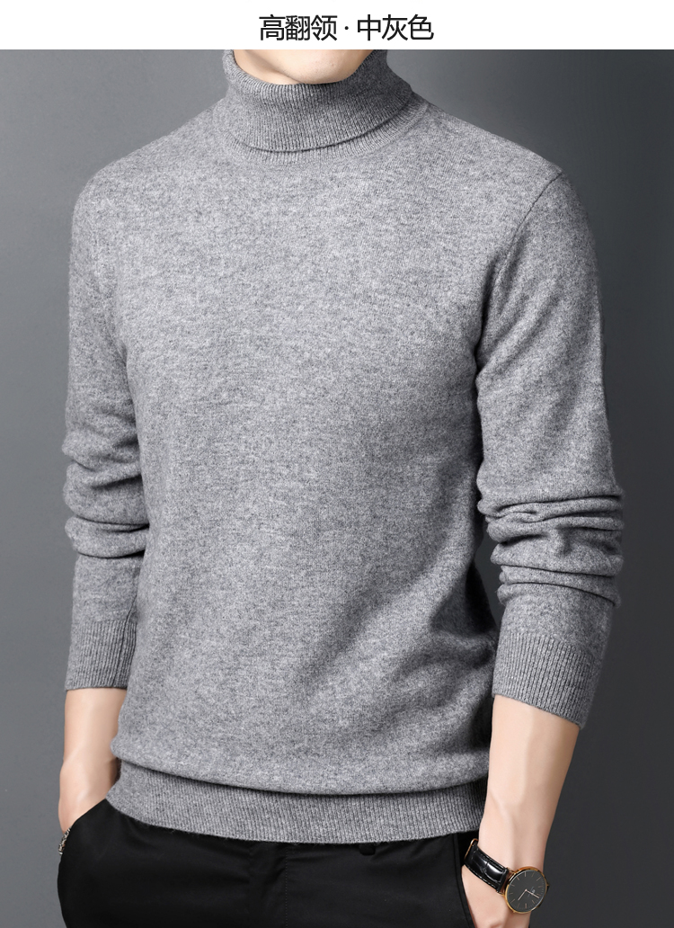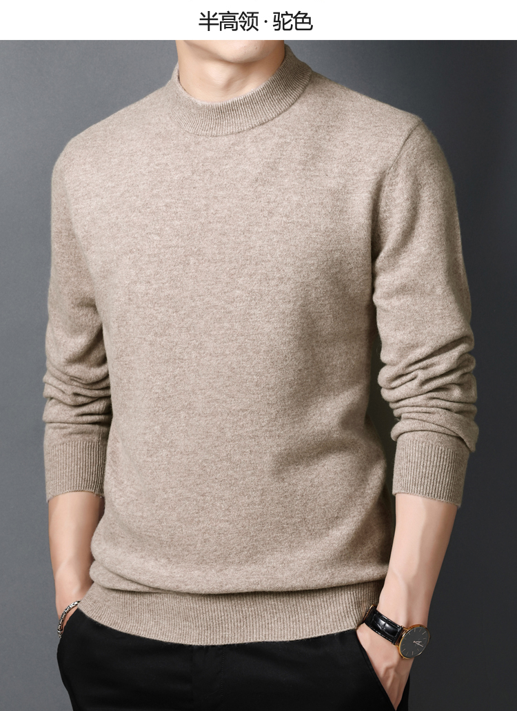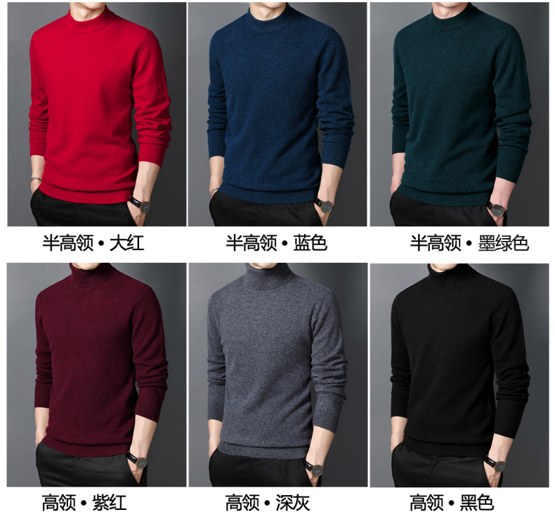 正品罗蒙羊毛衫男冬季保暖加厚中年纯色半高领针织打底毛衣男宽松