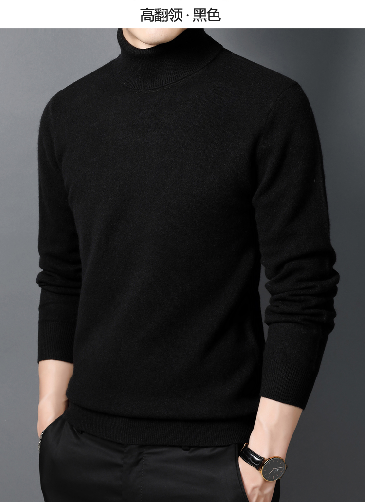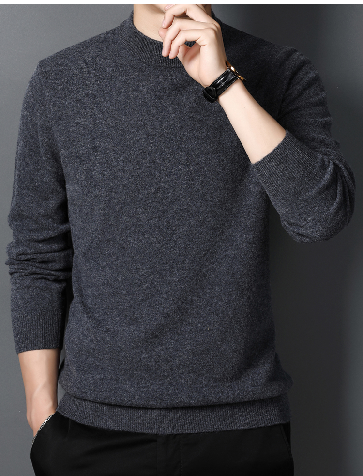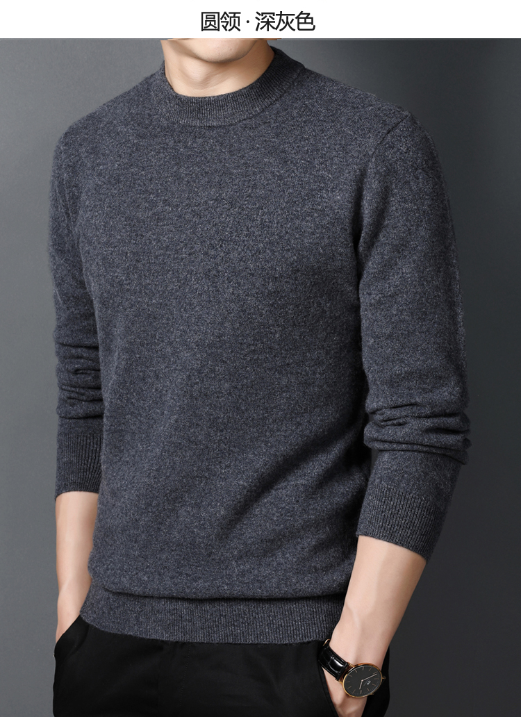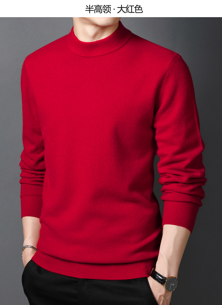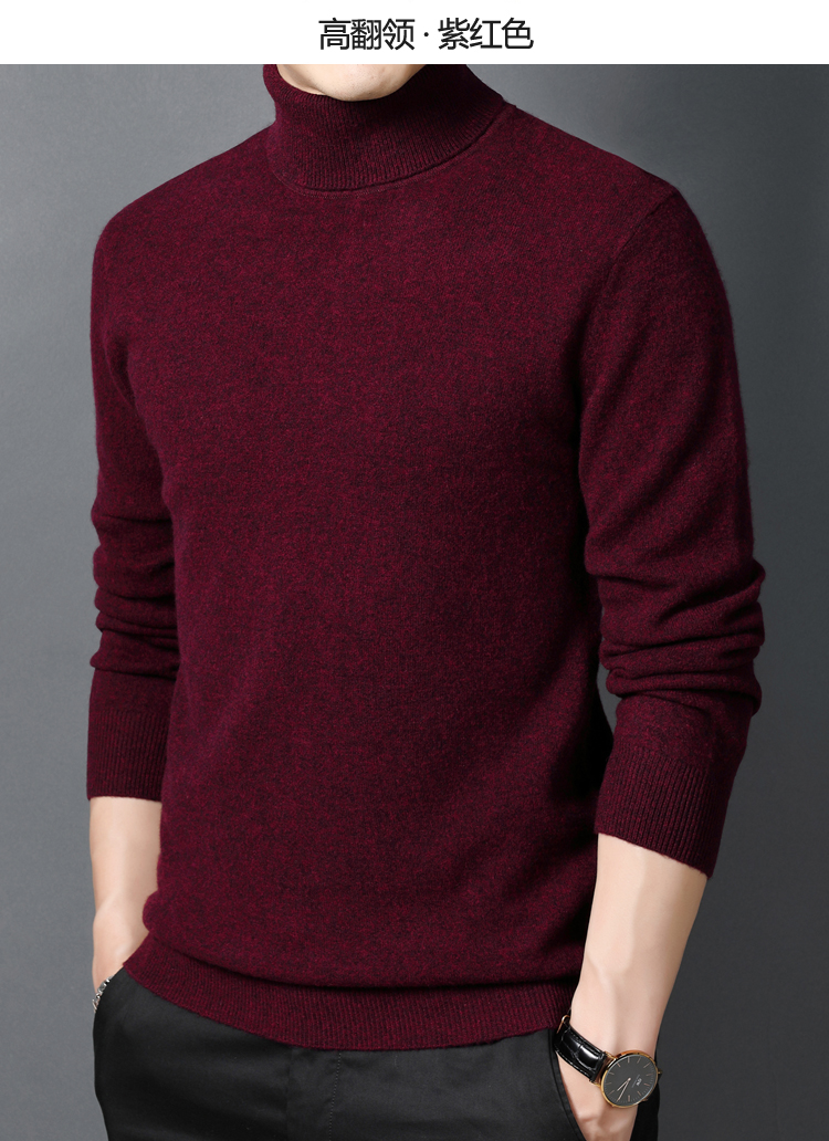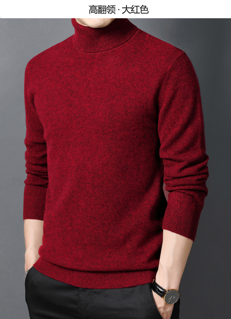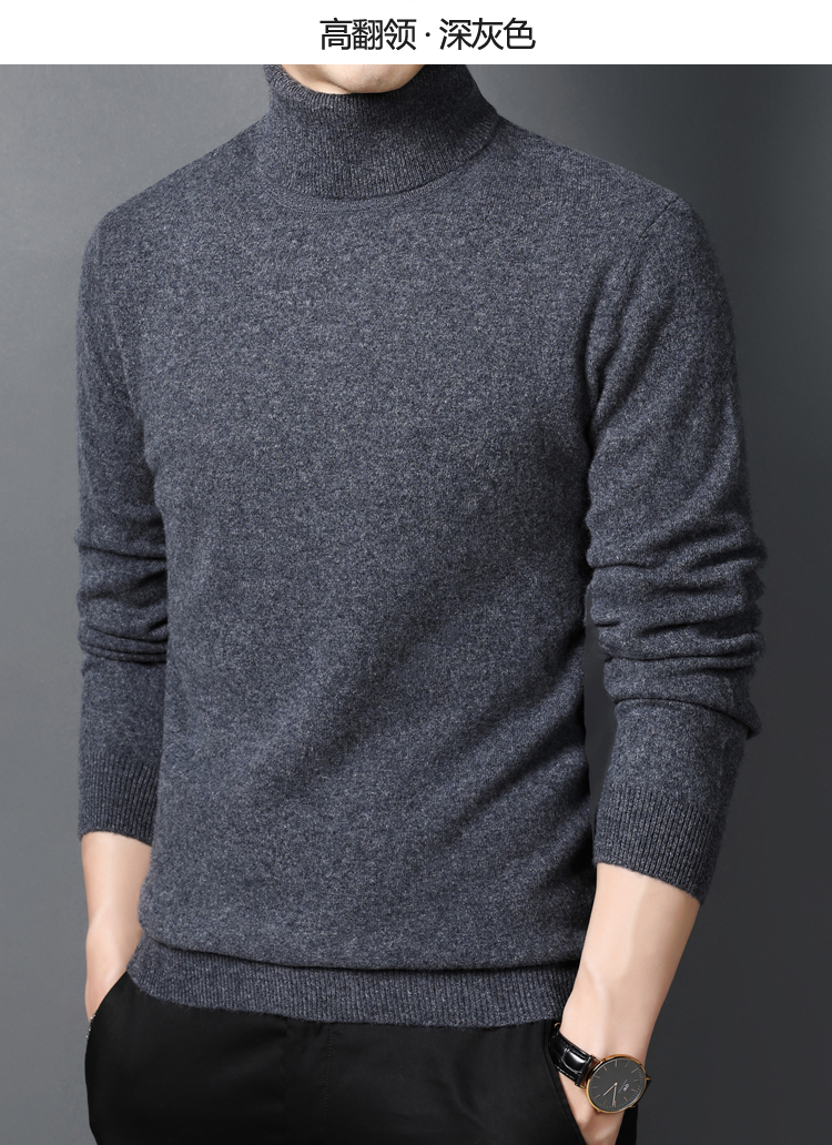 正品罗蒙羊毛衫男冬季保暖加厚中年纯色半高领针织打底毛衣男宽松