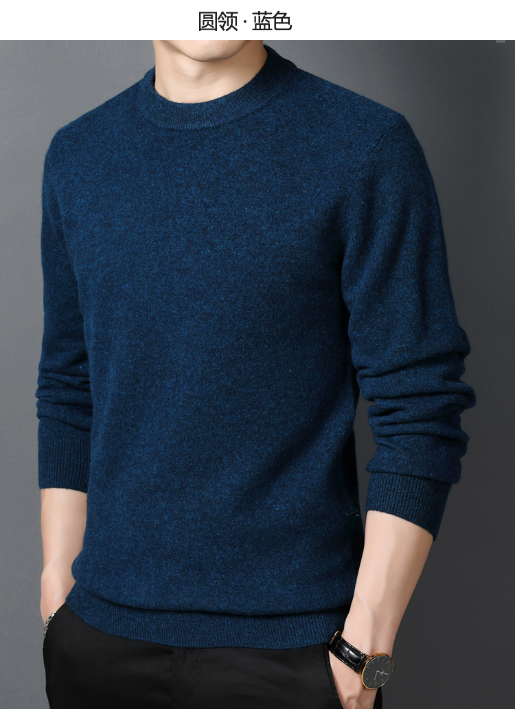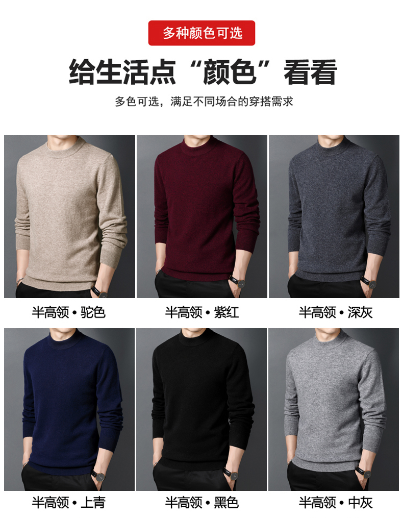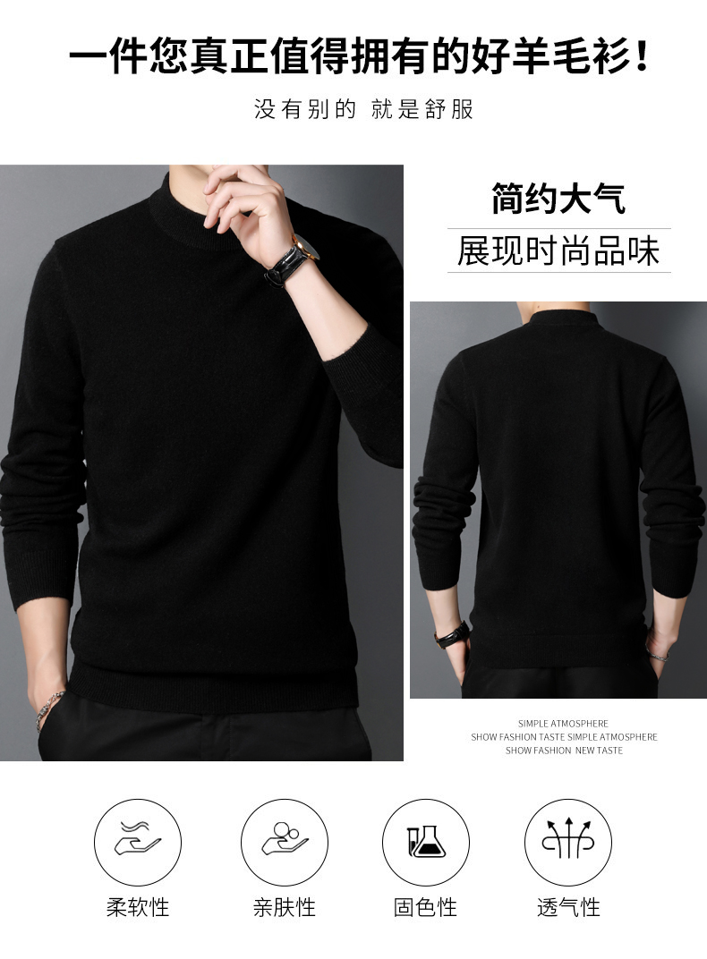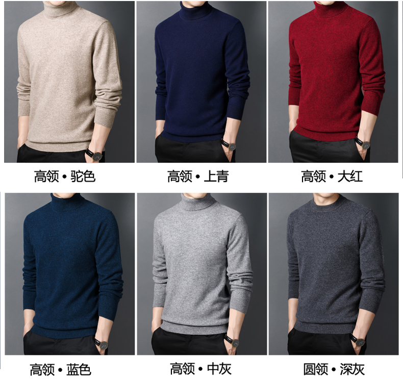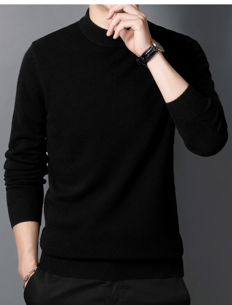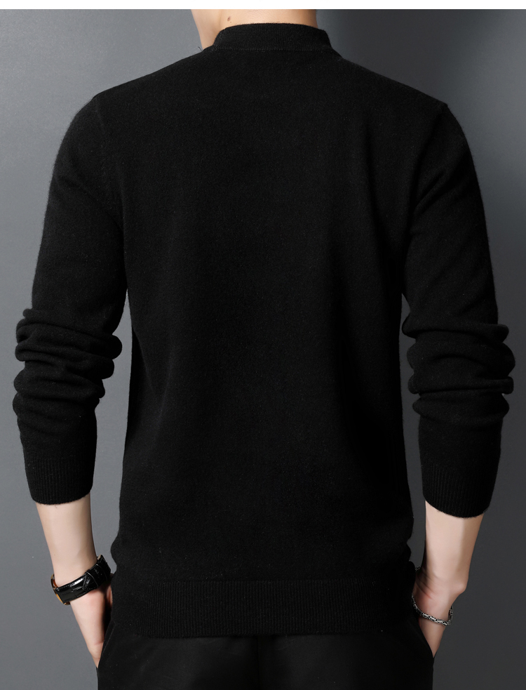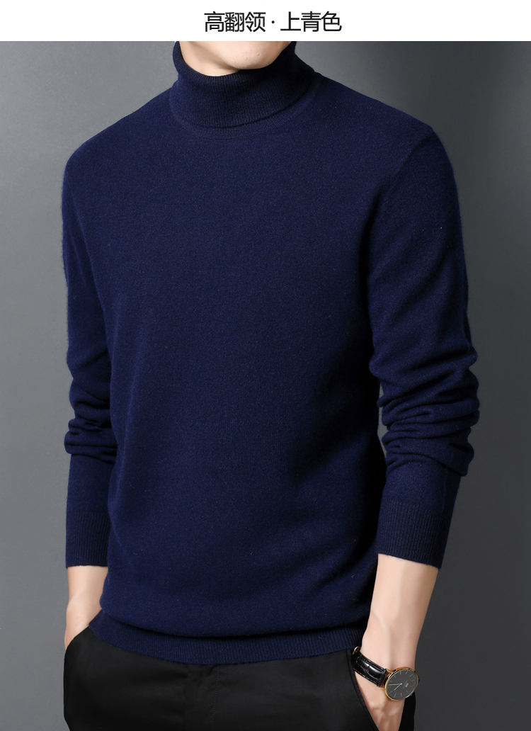 正品罗蒙羊毛衫男冬季保暖加厚中年纯色半高领针织打底毛衣男宽松