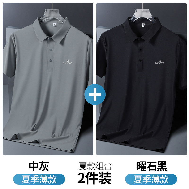 啄木鸟官方旗舰店爸爸短袖t恤男士中老年冰丝polo衫2026新款夏季