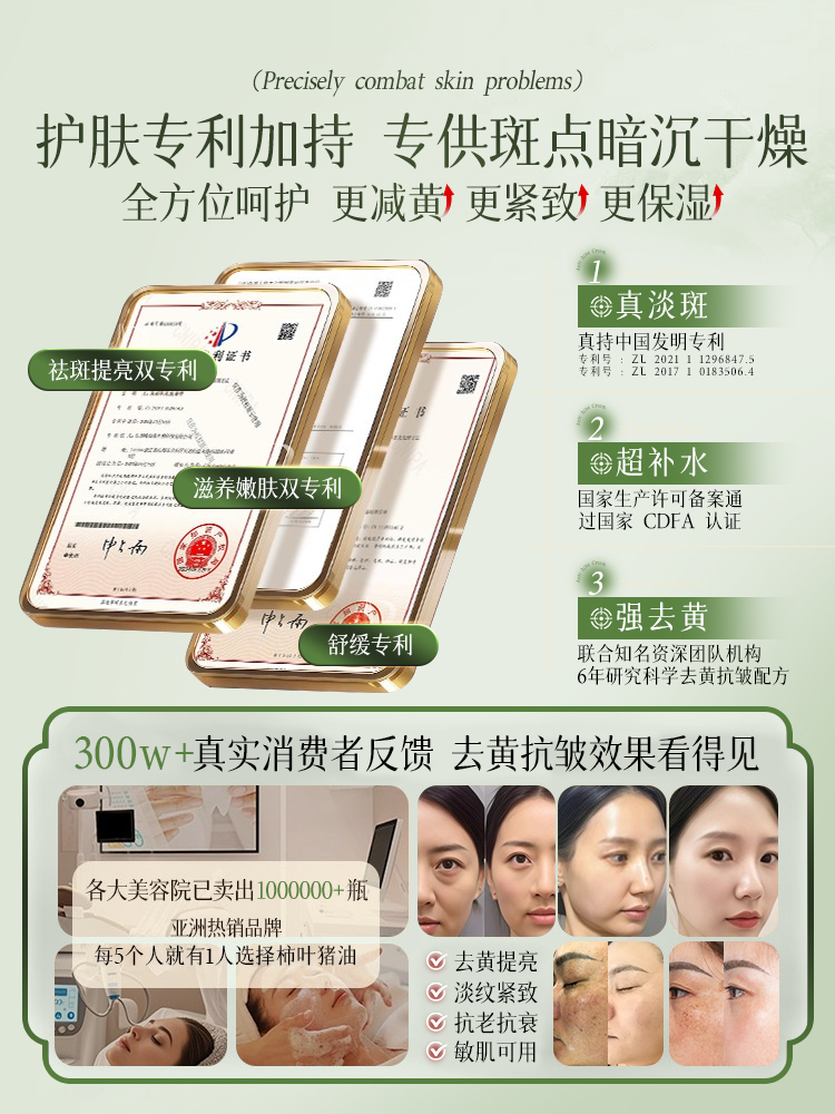 草本柿叶猪油三七膏淡化斑点提亮养肤嫩肌去黄提亮男女用正品官方
