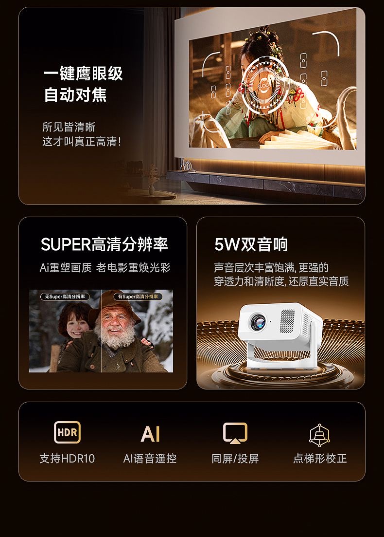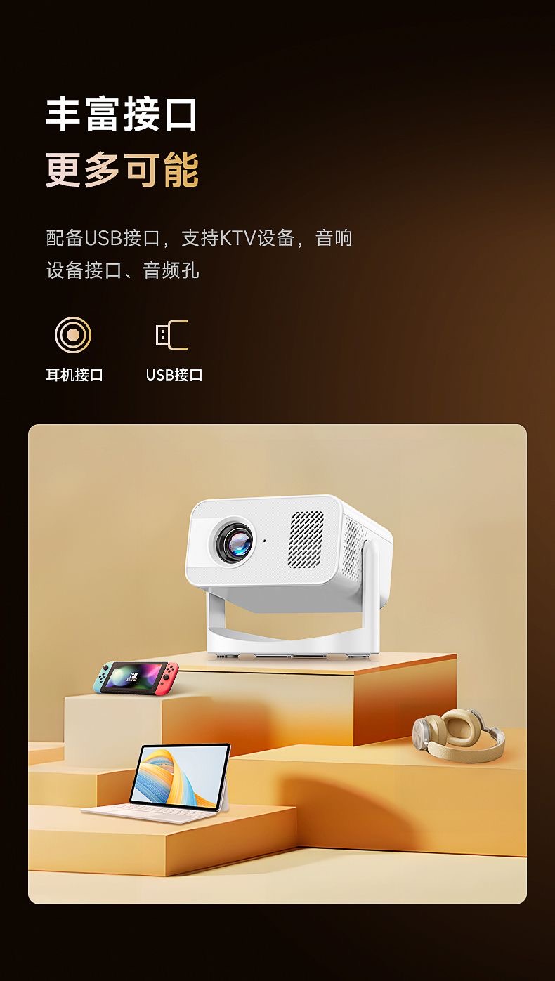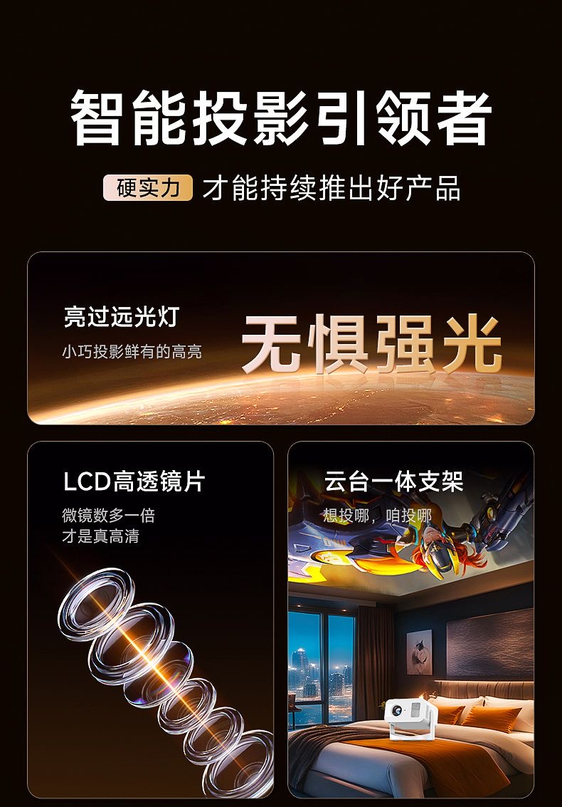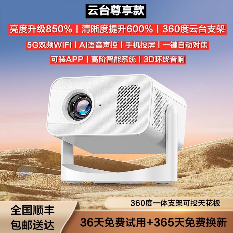 【巨幕云台性价比投影】投影仪家用卧室客厅小型宿舍学生家庭影院投屏小型便携白天可用可连手机智能投影机