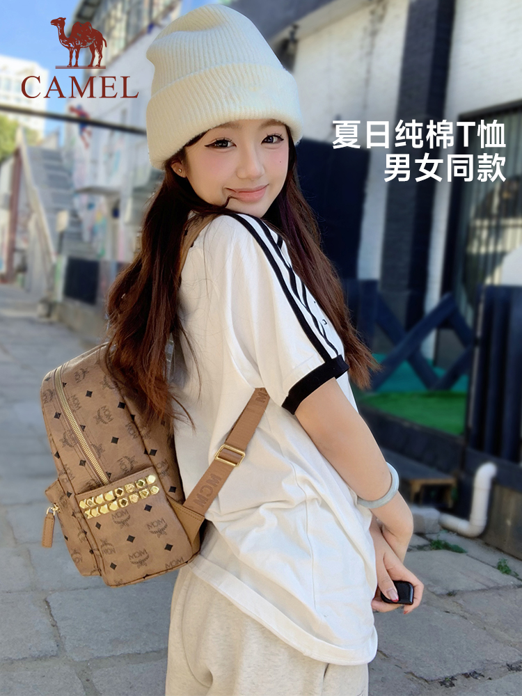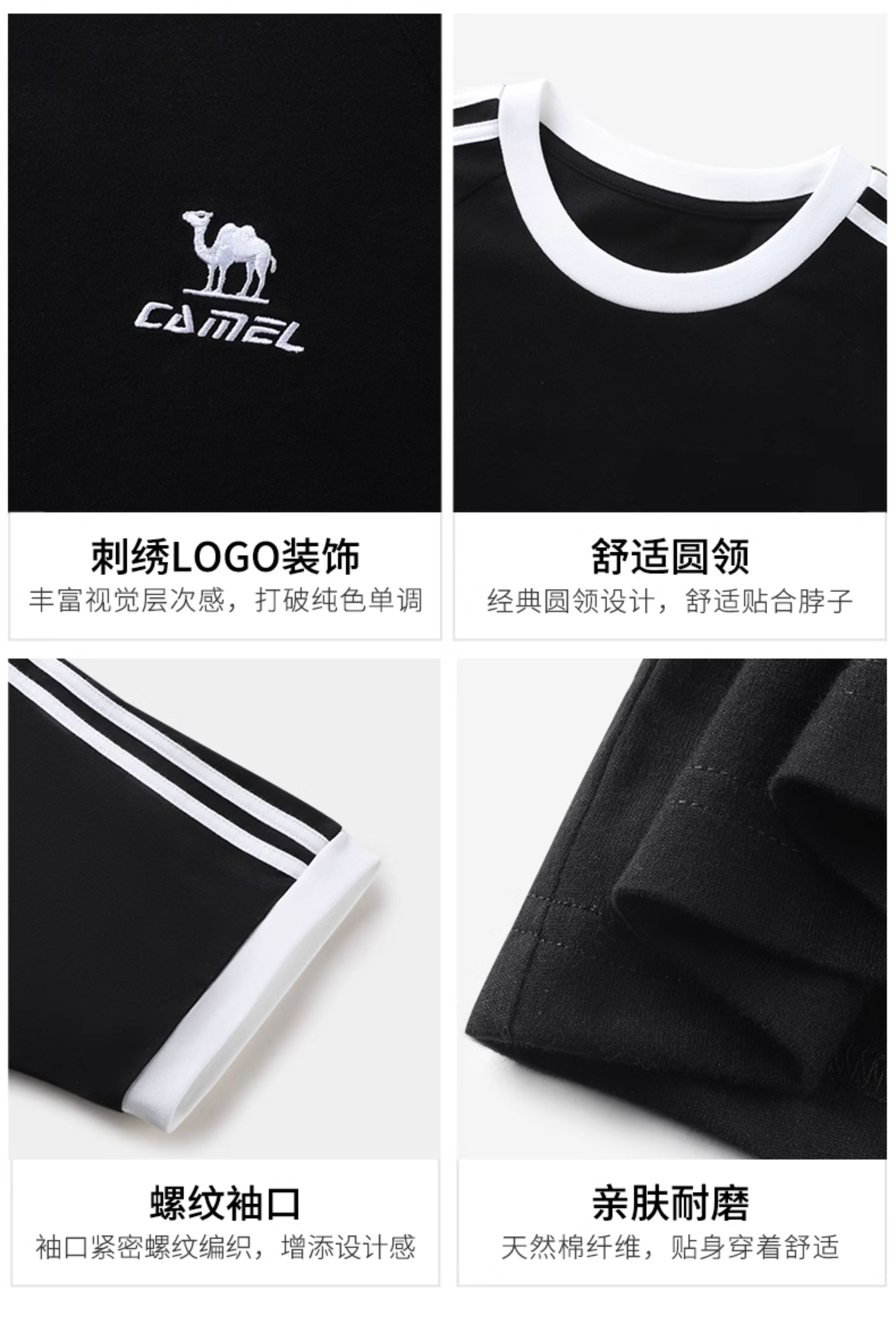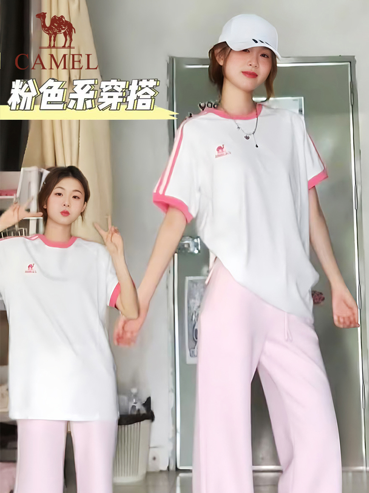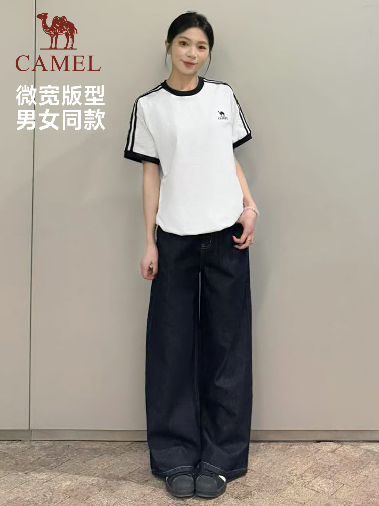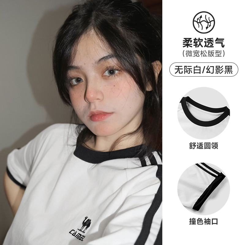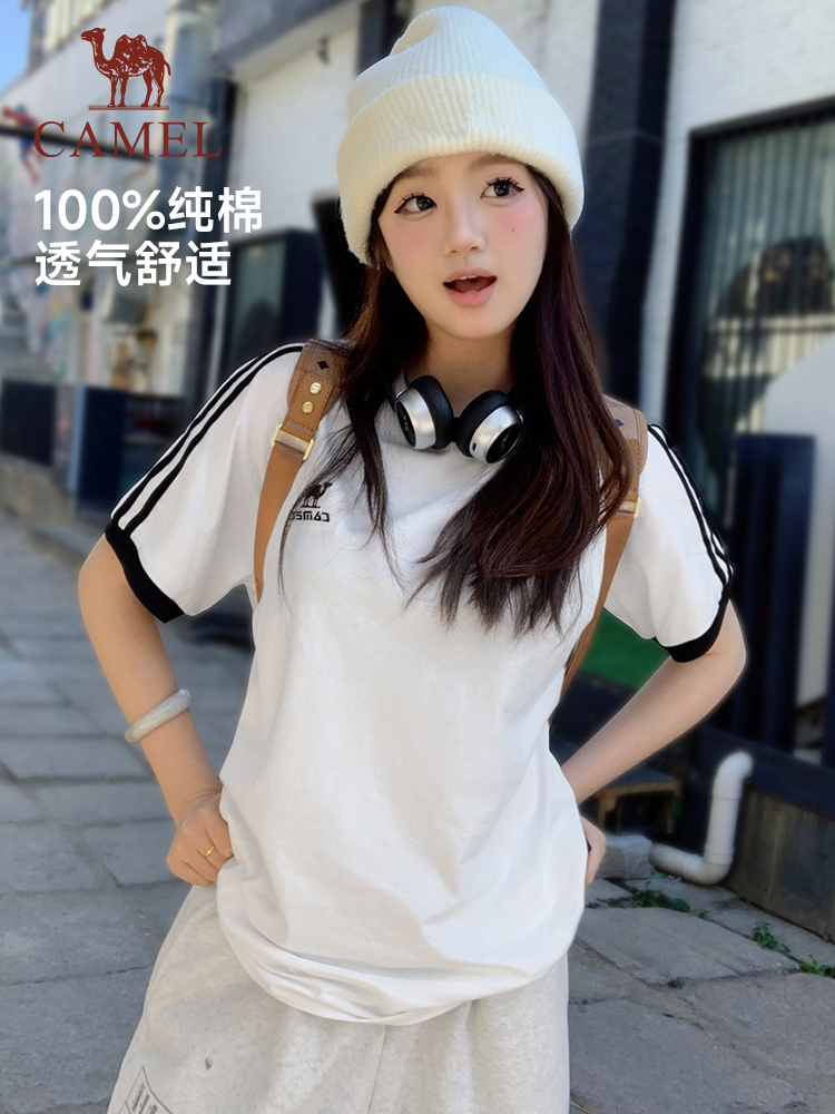 骆驼纯棉T神夏日短袖T恤女2025夏新款情侣宽松复古运动休闲上衣男