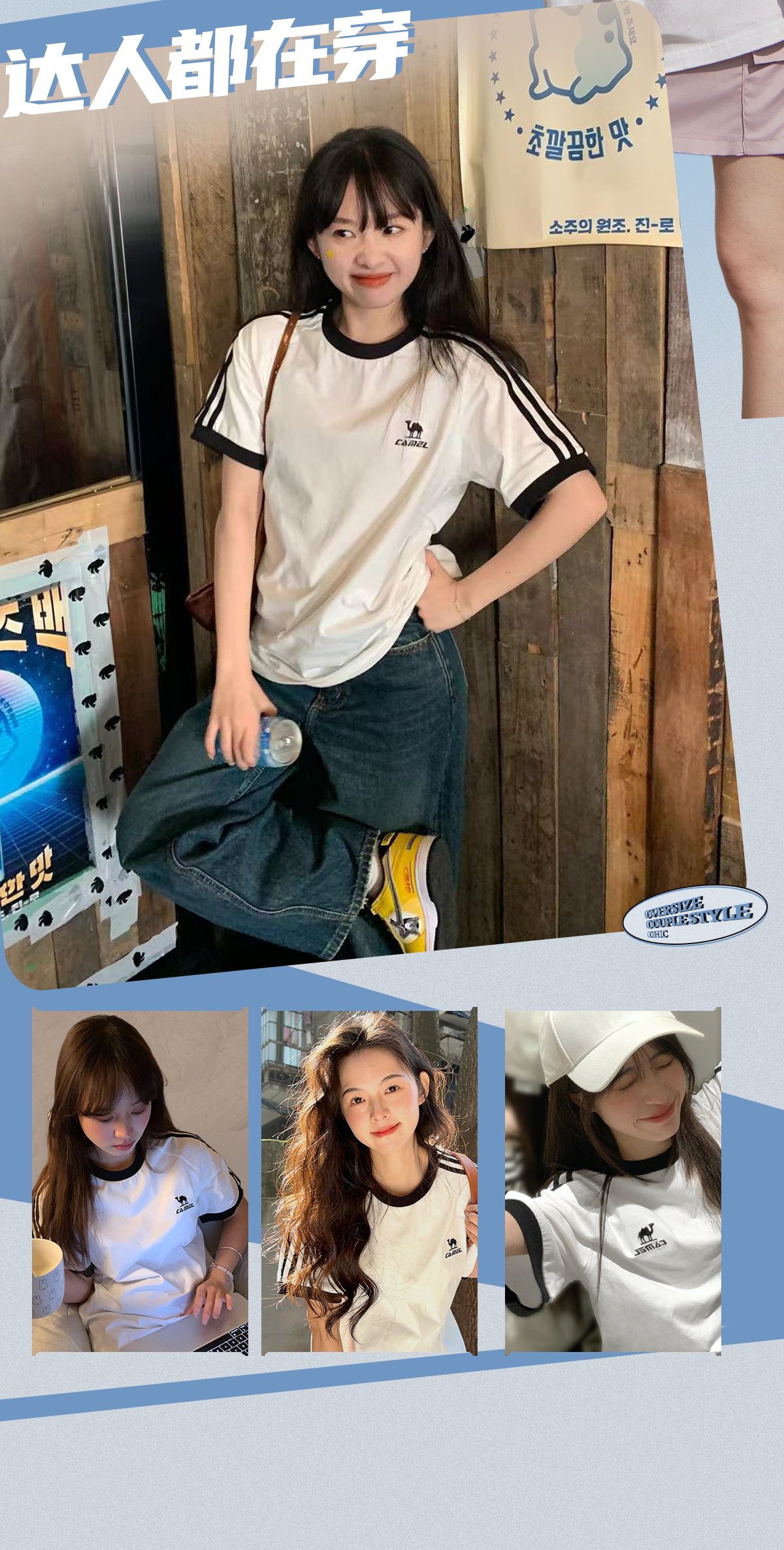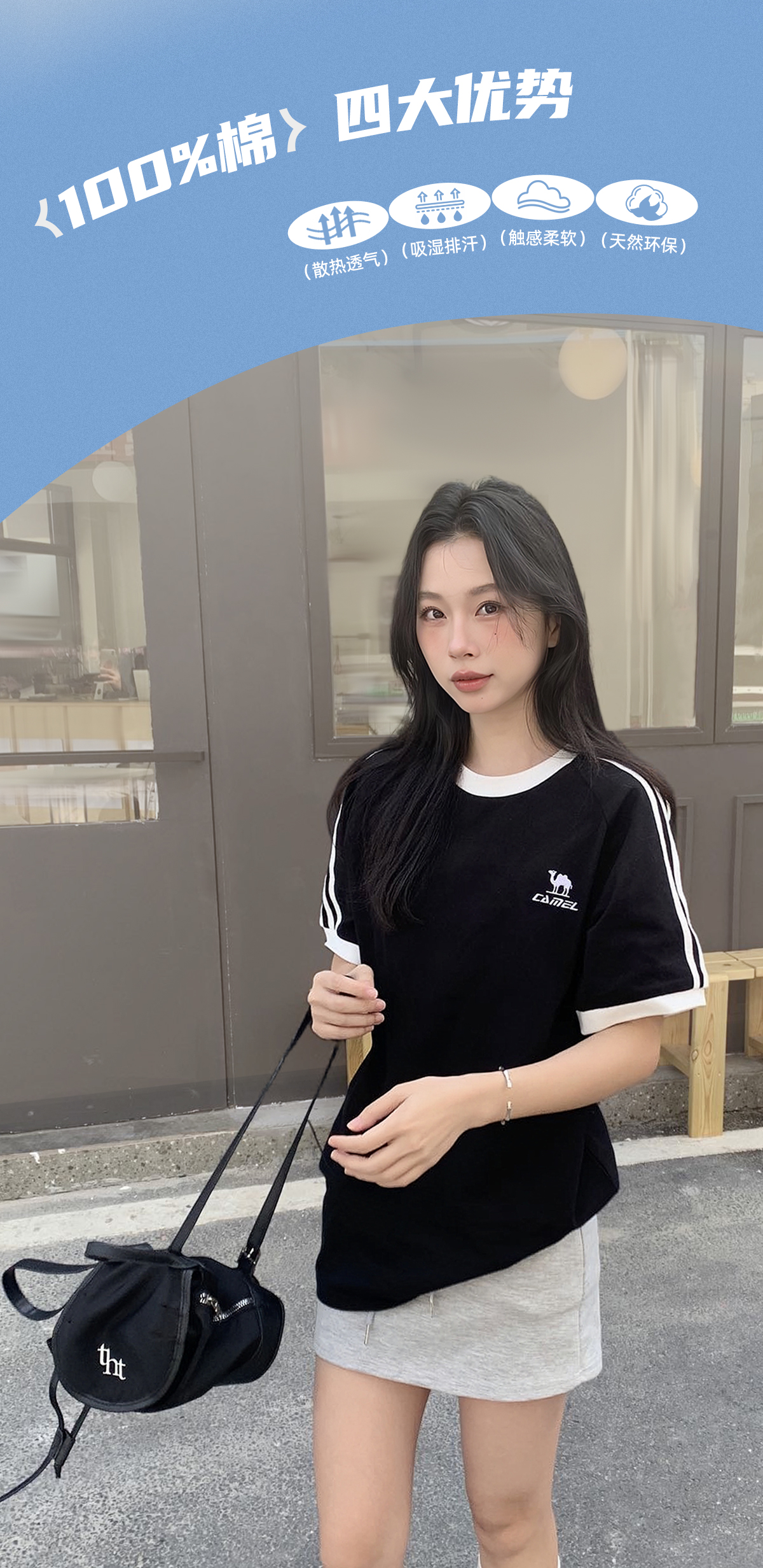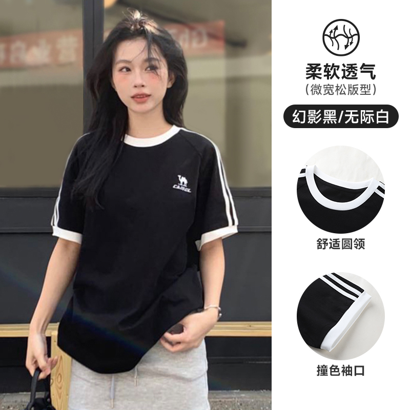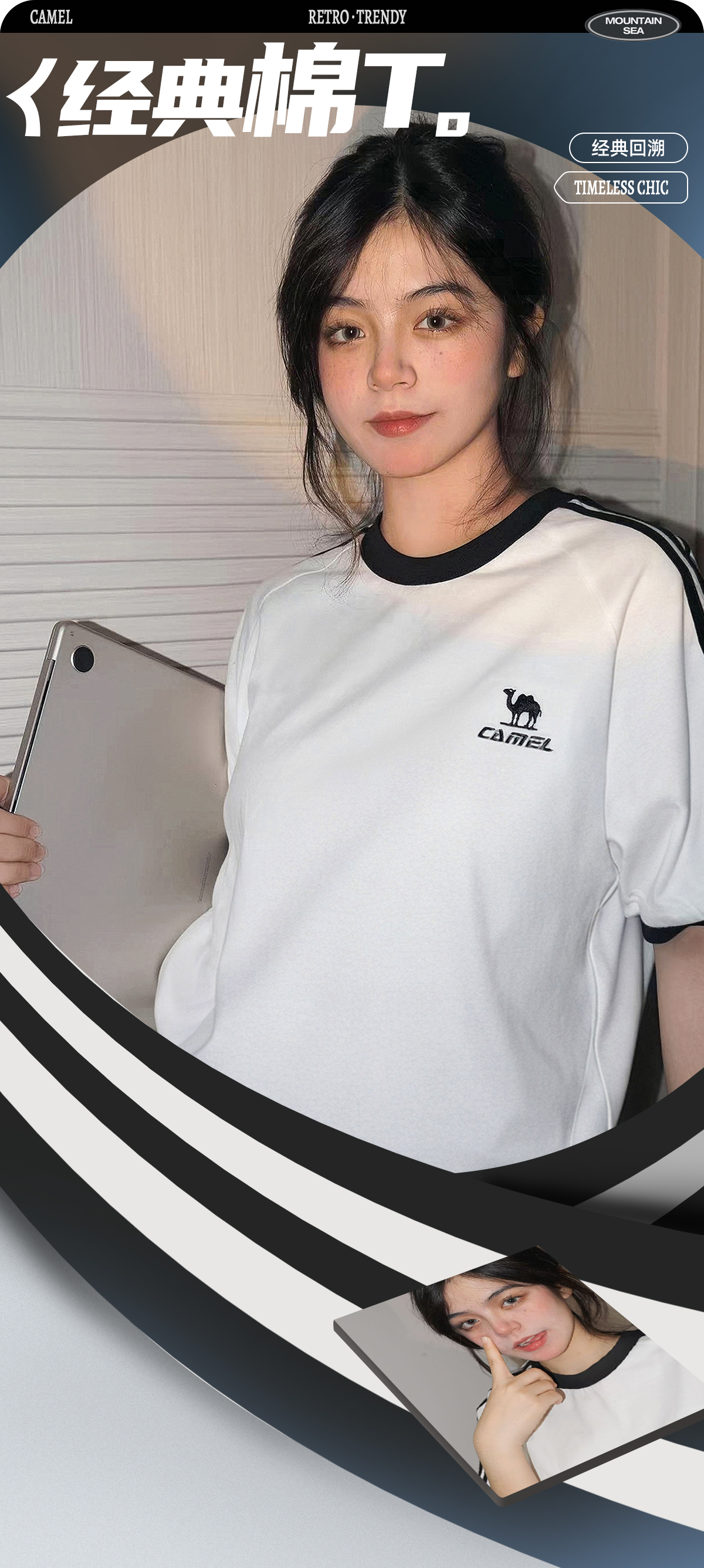 骆驼纯棉T神夏日短袖T恤女2025夏新款情侣宽松复古运动休闲上衣男