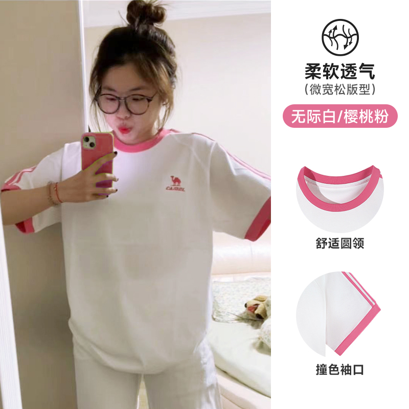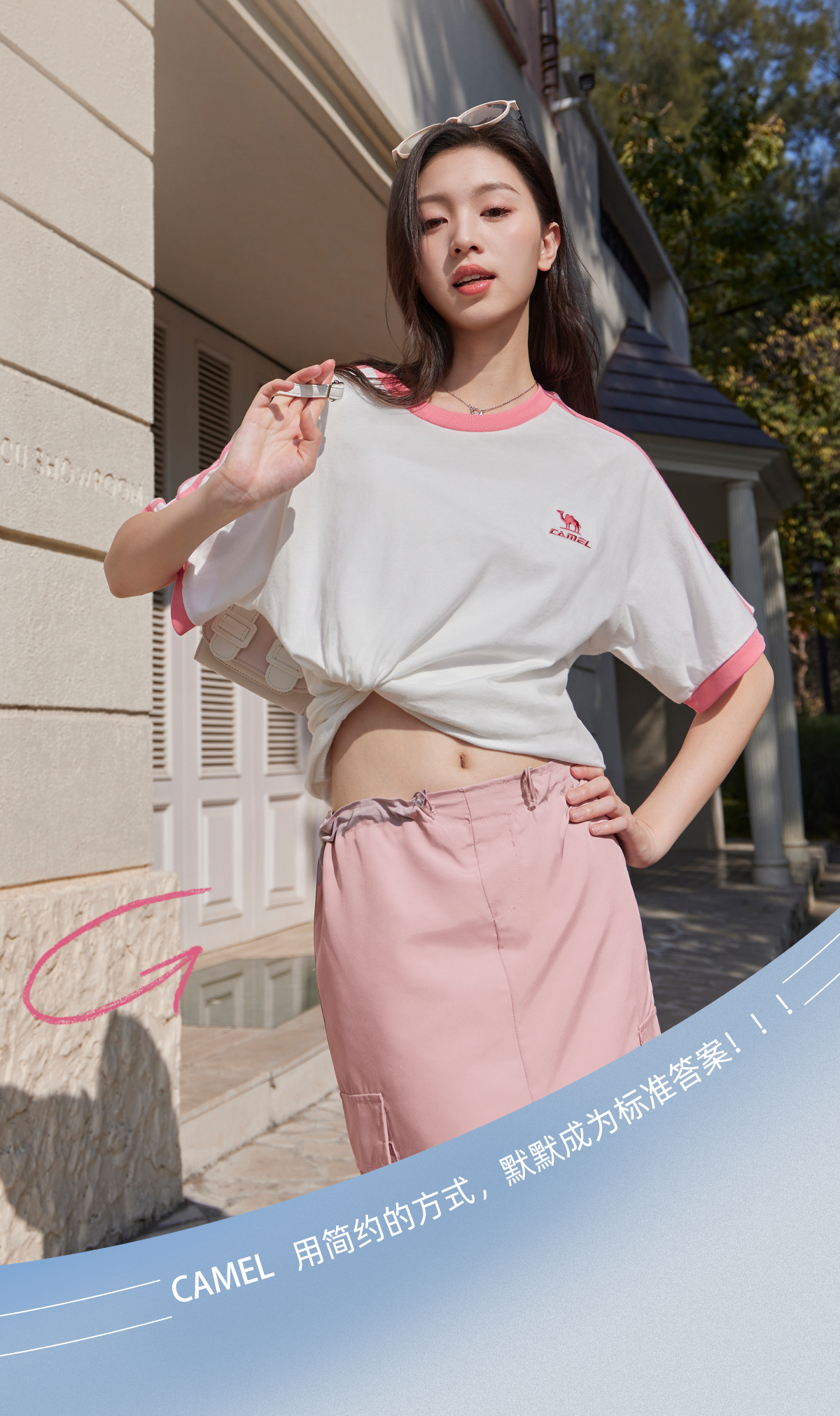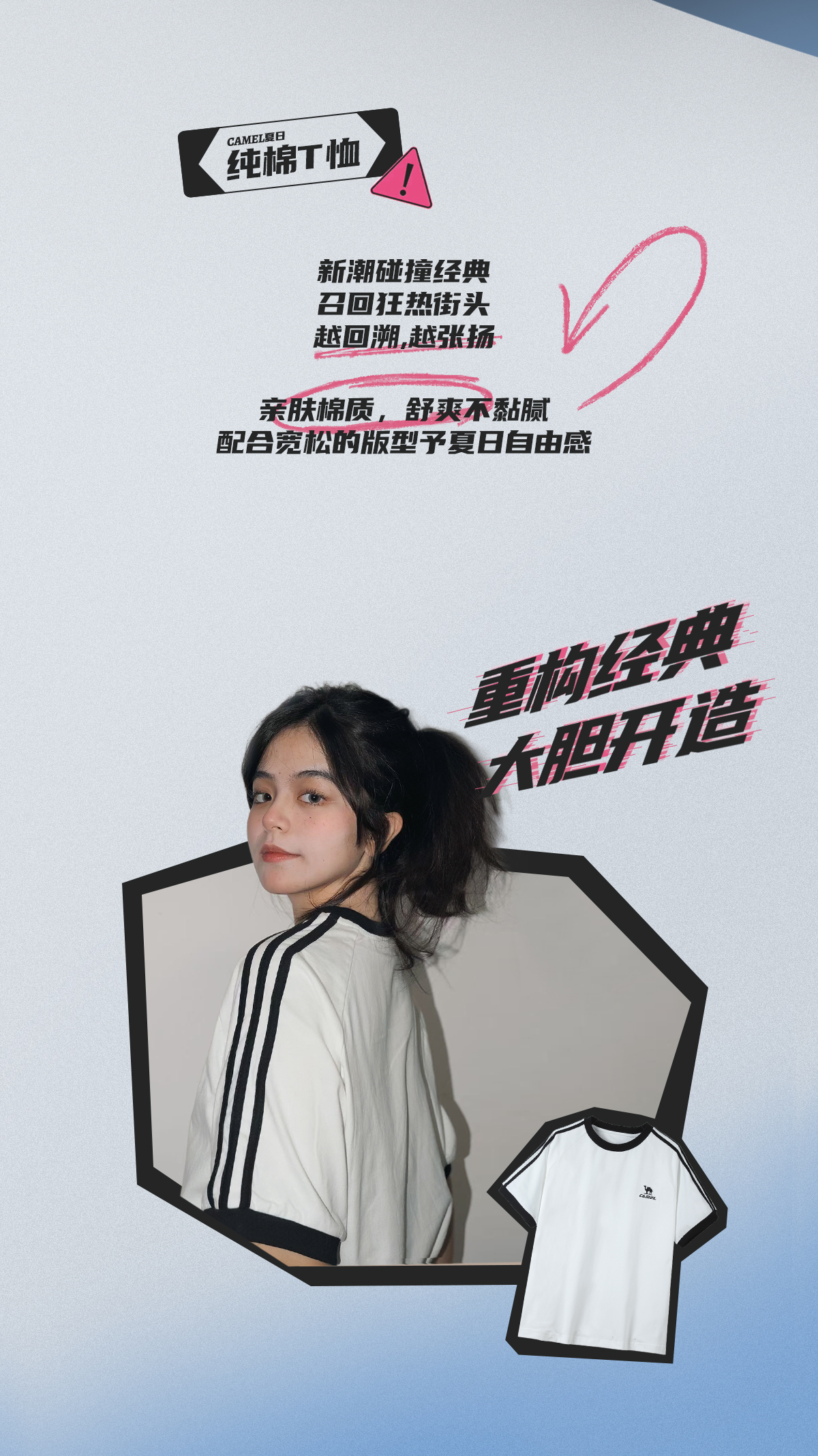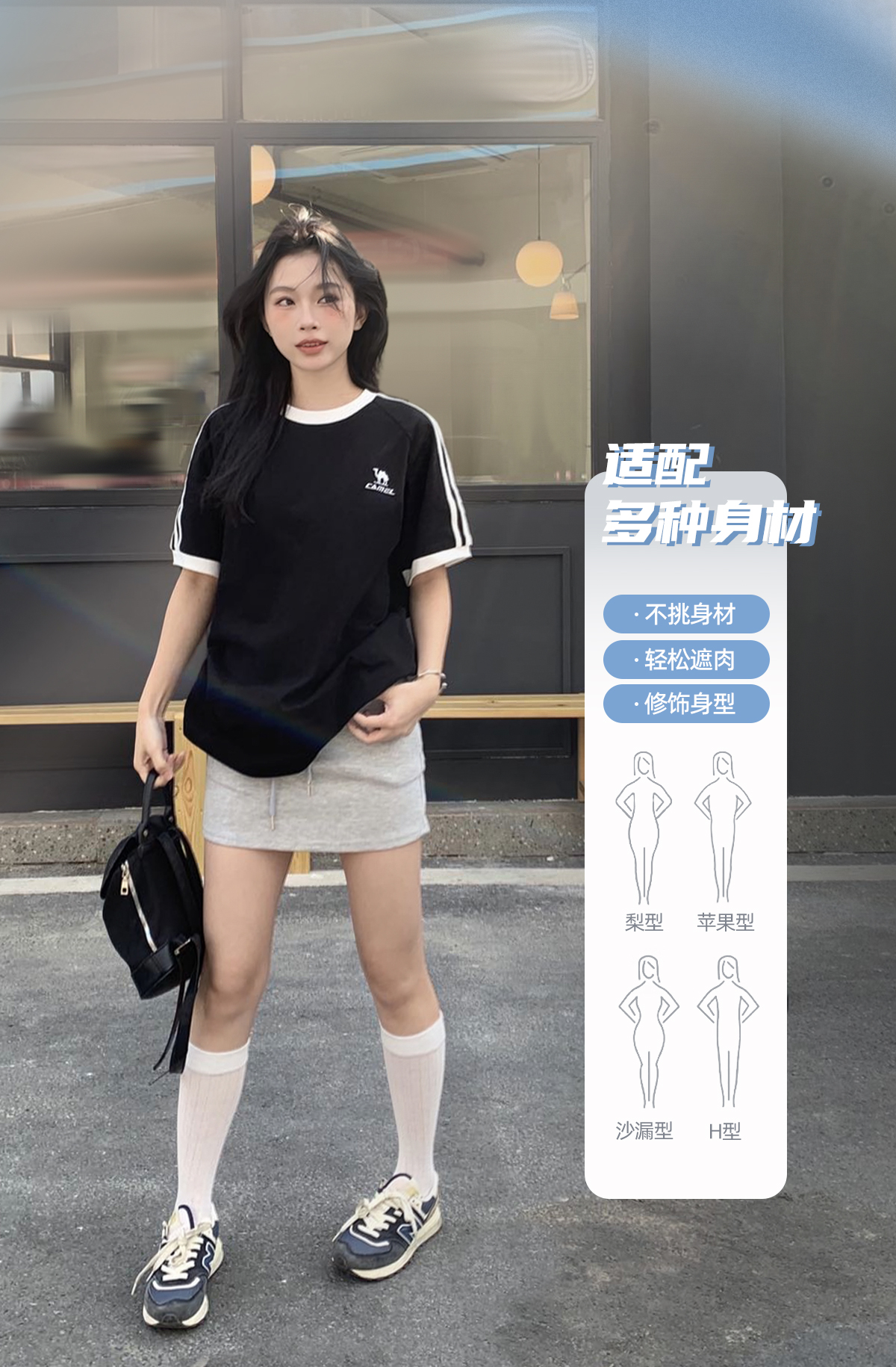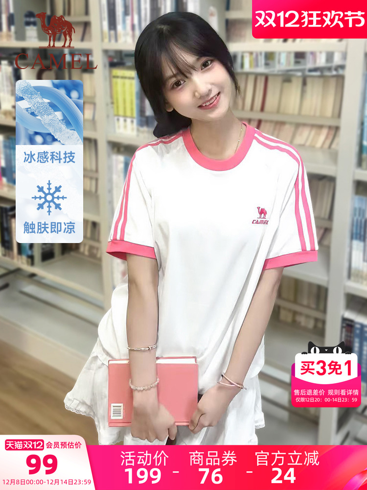 骆驼纯棉T神夏日短袖T恤女2025夏新款情侣宽松复古运动休闲上衣男